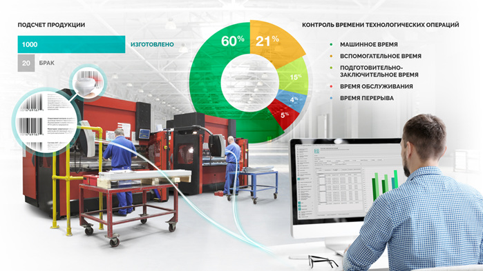 Для контроля работы операторов в системе предусмотрена их регистрация непосредственно на рабочем месте. Согласно установленному регламенту, оператор регистрируется в начале рабочей смены. После окончания смены или, если в течение смены на станке регистрируется другой оператор, выполняется автоматический сброс регистрации предыдущего оператора. В результате все производственные действия на станке, простои станка «привязываются» к конкретному оператору.