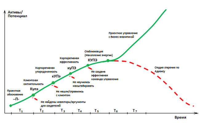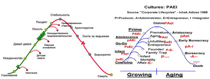 Для ответа на этот вопрос рассмотрим популярную модель Ицхака Адизеса. Мы не будем подробно раскрывать ее содержание, отправляя для этого к ее источникам, а приведем ее основные положения. Адизес пишет[1]: