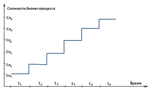 Рис. 5. Ступенчатый вид зависимости сложности бизнес-процесса от времени.