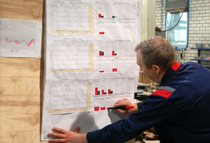 Проводился ежедневный мониторинг количества невыполненных заказов и причин, повлиявших на это. Все данные отображались на временном стенде, установленном в цехе.