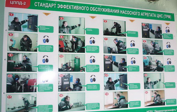 Обучение бережливому производству – непрерывный процесс, вовлекать в который следует уже с момента трудоустройства. Для этого в процессе трудоустройства в НГДУ «Лениногорскнефть» работнику предоставляют для изучения курс «Основы бережливого производства», после чего работник сдаёт интерактивное тестирование в рамках ЭКУ и получает на руки брошюру-памятку. Отработав первый шаг, НГДУ приступило к поиску потерь. Были определены основные направления деятельности: добыча нефти и газа, поддержание пластового давления, подготовка нефти, строительство и подземный ремонт скважин.