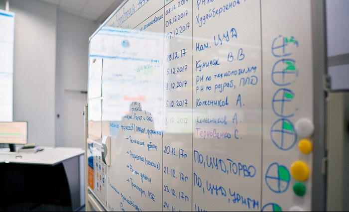 Привычным атрибутом рабочего места начальников структурных подразделений, мастеров бригад в дочерних обществах стали стенды визуального управления эффективностью. С их помощью доступными для всех сотрудников становятся производственные показатели, текущие планы, возникающие проблемы. Как результат время на проведение планерок сокращается на 20%, а в некоторых цехах и подразделениях перешли от планирования на день к недельному планированию работы участков и бригад.