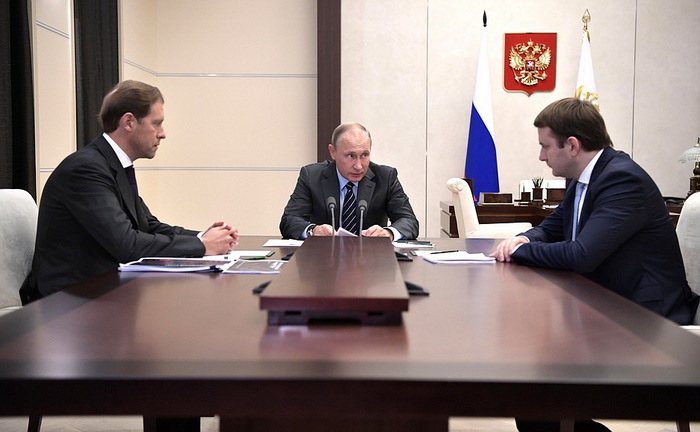 Владимир Путин на совещании с Министром экономического развития Максимом Орешкиным и Министром промышленности и торговли Денисом Мантуровым. Фото: http://www.kremlin.ru/