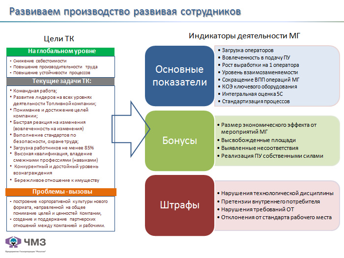 Цели управляющей компании и предприятия были декомпозированы до уровня малых групп (бригад). Показатели сформированы в три блока: