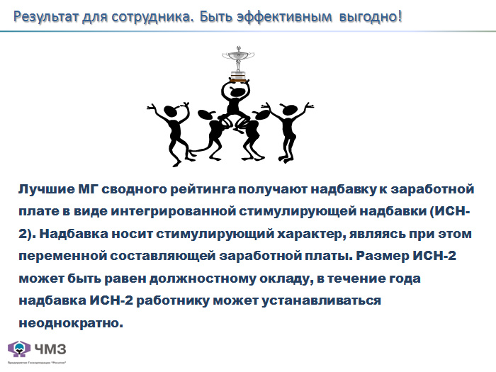 Отдел-куратор конкурса формирует сводный рейтинг МГ предприятия с обозначением зоны эффективности малой группы.