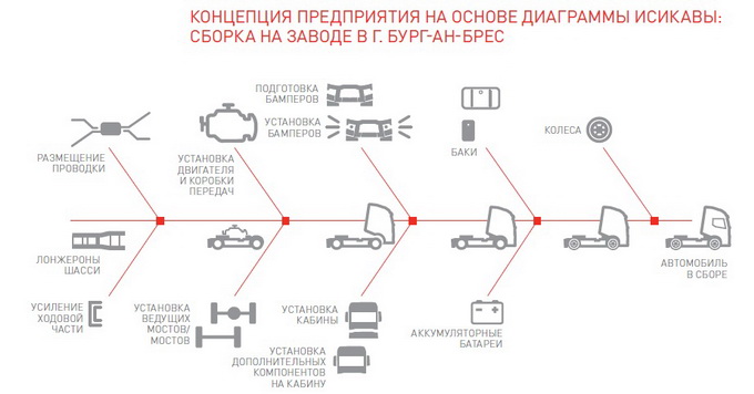 Начиная с августа 2013 года новые автомобили Renault Trucks для перевозок на большие расстояния и строительства собираются на заводе в г. Бург-ан-Брес, работающем по принципу: «Простота сборки и эргономика рабочего места». Ниже приведен краткий обзор ключевых этапов производства.