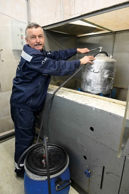 – Для работы мы получаем законсервированные трубы, – поясняет автор предложений по улучшениям. – Они хранятся в масле, на них имеется маркировочная краска. При расконсервации сгонщики-смывщики смывают покрытие при помощи щеток и тряпок, промывают трубы изнутри и снаружи в специальной ванне. Переливают смывочную жидкость из двухсотлитровой бочки в ванну обычно два слесаря.