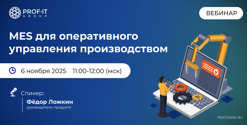 6 ноября в 11:00 состоится практический вебинар PROF-IT GROUP «MES для оперативного управления производством».