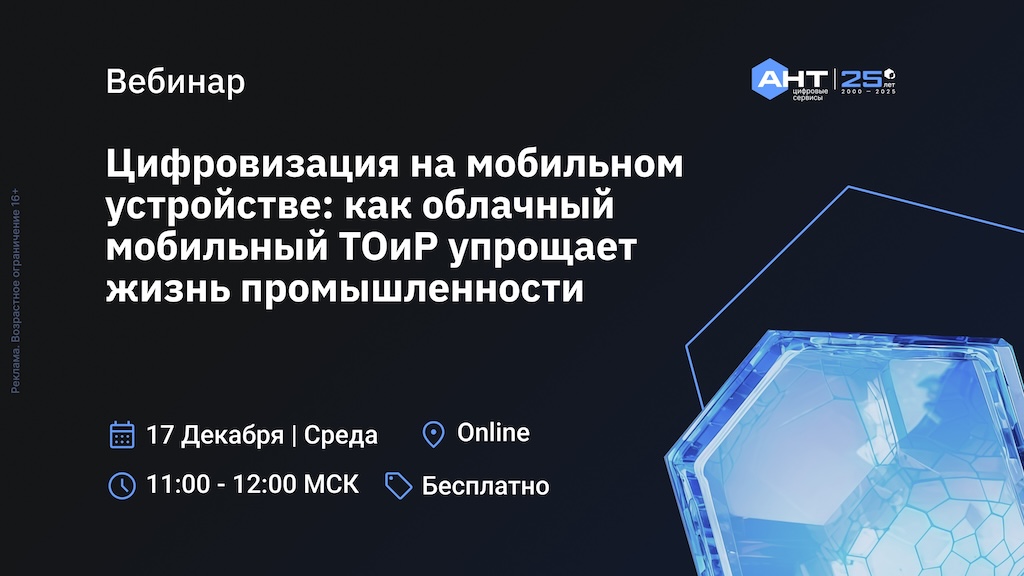 17 декабря 2025 года в 11:00 компания «АНТ-ЦС» проведет бесплатный вебинар, посвященный мобильным решениям автоматизации процессов ТОиР.