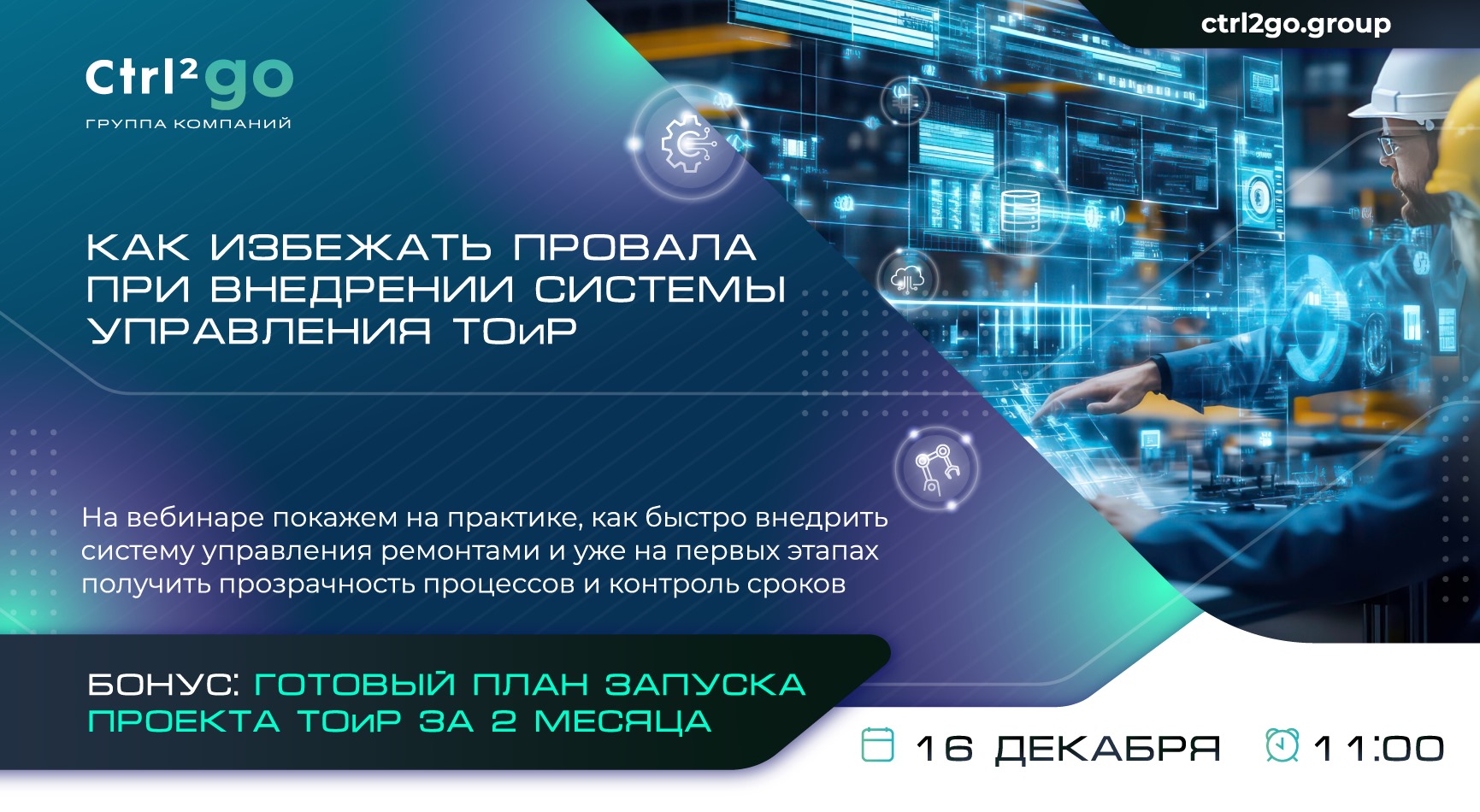 Об этом поэтапном подходе к цифровизации процессов ТОИР расскажут коллеги из Ctrl2GO на онлайн-вебинаре «Как избежать провала при внедрении системы управления ТОИР».