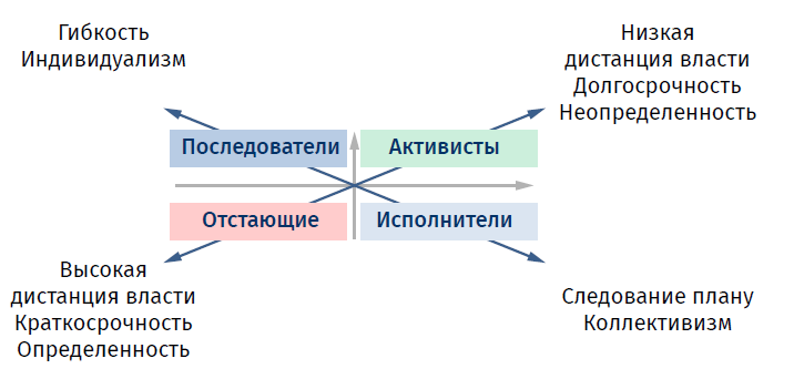 Сектор «Последователей» характеризуется ориентацией на гибкость и индивидуализм – при отсутствии вовлеченности руководства авторы пробуют подавать Идеи.