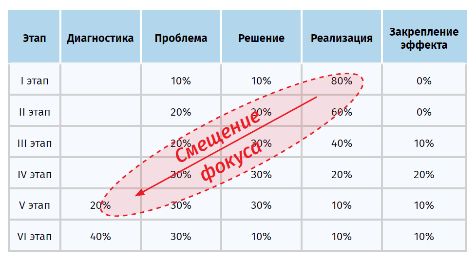 Рис. 5. Матрица распределения усилий менеджеров по решению проблем на разных этапах жизненного цикла Идеи