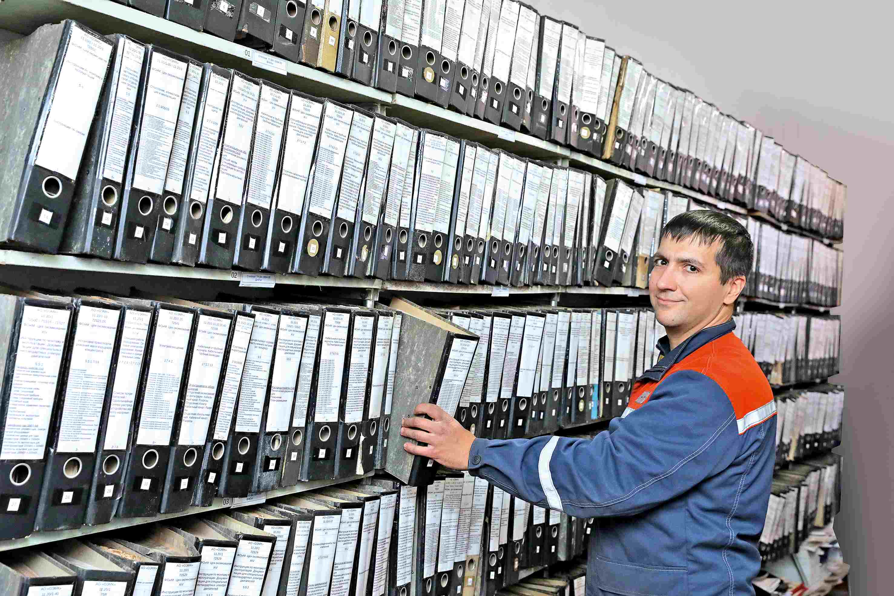 — У нас теперь здесь, как в Ленинской библиотеке, — с улыбкой показывает на огромный стеллаж с папками Алексей Гамов. — Всё подписано и пронумеровано. А ведь до недавнего времени папки были свалены в кучу. Лежали в мастерской в мешках и стояли на стеллажах с отвалившимися корешками, и казалось нереальным найти в них необходимые данные о том или ином оборудовании.