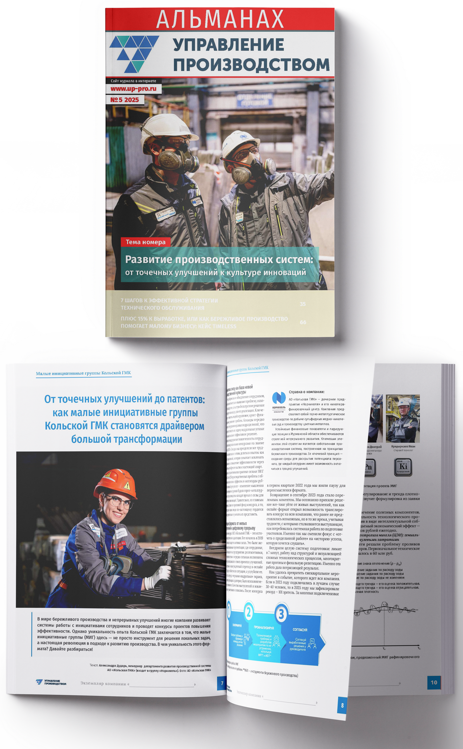 На страницах альманаха «Управление производством. Развитие производственных систем: от точечных улучшений к культуре инноваций» мы рассматриваем самые разные аспекты, из которых строится успешная производственная система: