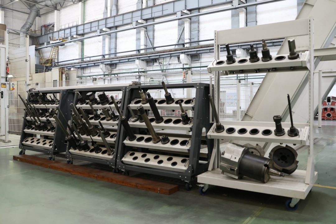 Для приспособлений и оснастки используемой на станках приобрели мобильные стеллажи на колесах. Теперь все необходимое можно легко переместить прямо к станку, а не носить в руках.