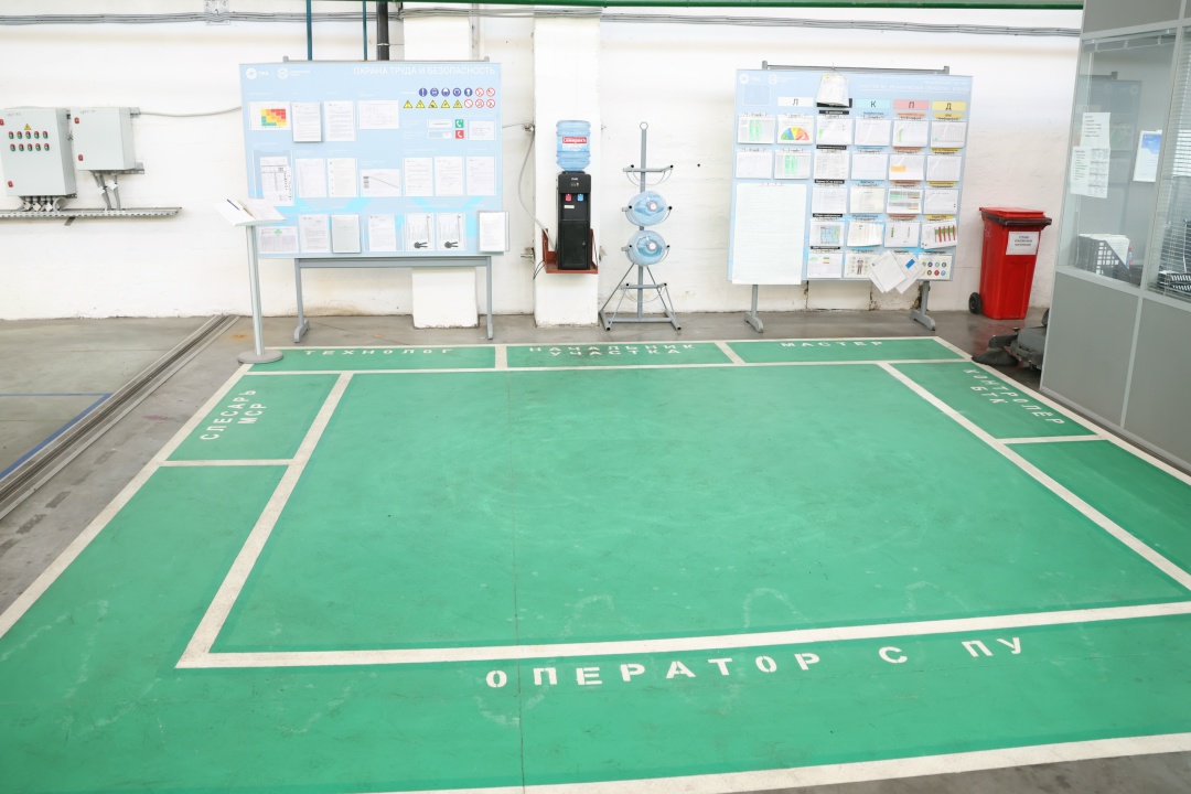 Отдельное внимание — организации труда. Утренние пятиминутные совещания у начальника участка теперь проходят по новым правилам. На полу у стенда визуального менеджмента появилась разметка. Все стоят по периметру, каждый на своем месте. Сразу видно, кто пришел, кого нет. Начальник за пять минут успевает выдать задания, обсудить показатели и напомнить о инструментах бережливого производства. Это дисциплинирует и экономит время.