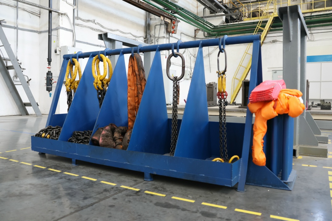Даже такая, казалось бы, рутина, как хранение грузозахватных приспособлений, подверглась оптимизации. Для чалок и цепей сделали специальные подставки, которые уже установлены в каждом пролете цеха. Теперь все необходимое для погрузки всегда лежит в одном месте: подъехал, взял, прицепил — и можно работать.
