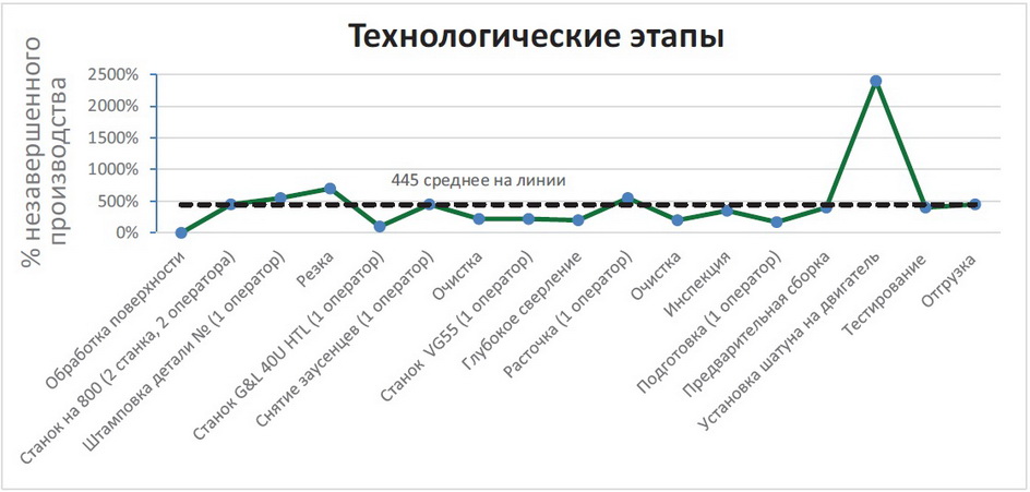 В результате непосредственного наблюдения за процессом создания ценности команда пришла к необходимости перехода от выталкивающего производства к вытягивающему, что позволит сократить объемы незавершенного производства и повысить управляемость процессов.