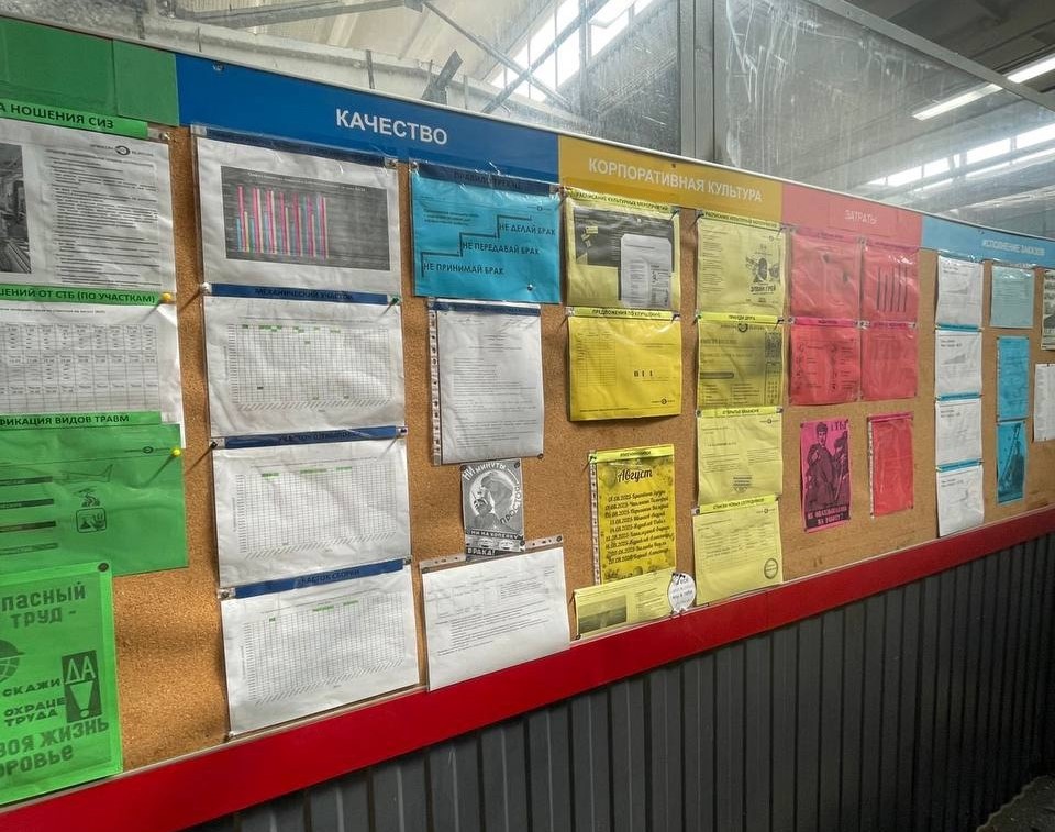 На любом успешном предприятии есть свои ритуалы, которые задают тон всей дальнейшей работе. Таким новым, но уже доказавшим свою эффективность ритуалом стало для наших коллег утреннее оперативное совещание у командной доски. Но что стоит за этим форматом? Это не просто «планерка» у новой доски. Это выстроенная система управления, охватывающая пять ключевых направлений работы каждого цеха: Безопасность, Качество, Исполнение заказов, Затраты и Корпоративную культуру. Ежедневный фокус на этих блоках позволяет командам оперативно выявлять отклонения, быстро принимать решения и наглядно видеть статус выполнения ключевых показателей.