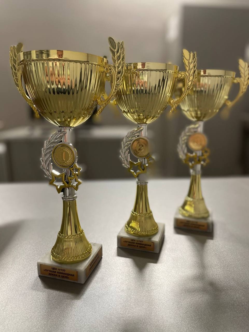 Почетные кубки для победителей конкурса «Лучшая командная доска в цехе»