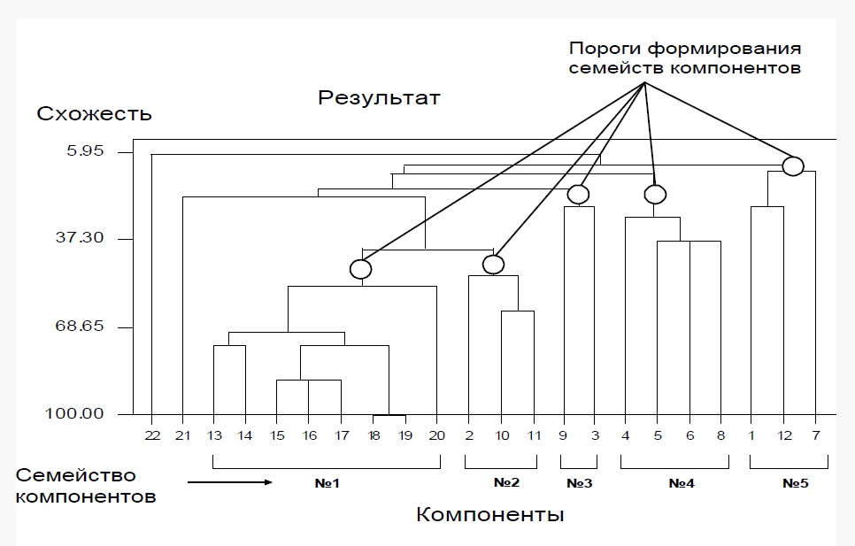 Рис. 6. Пороги формирования семейств компонентов для создания второго уровня VNM