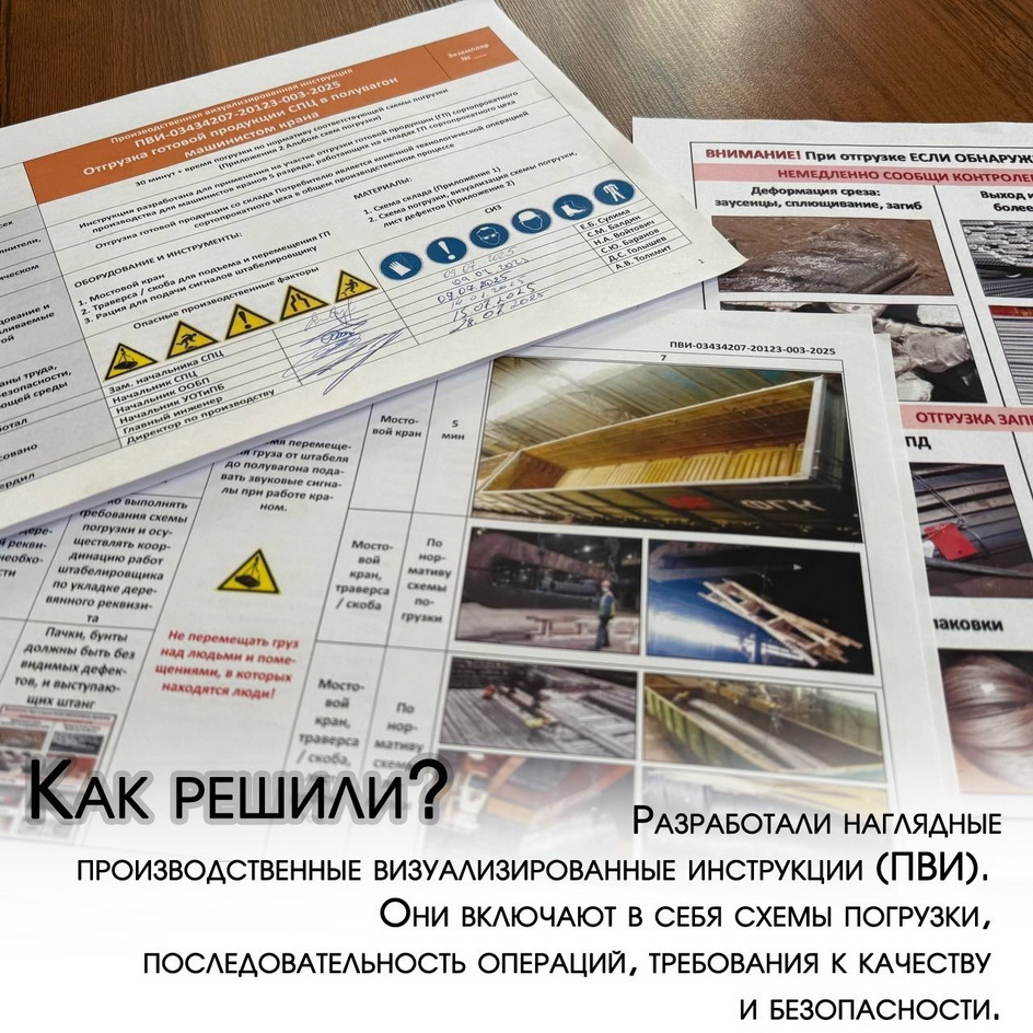 До введения ПВИ мастера участка складирования и погрузки СПЦ устно инструктировали сотрудников, как правильно укладывать продукцию в вагоны. Несовершенство устных инструкций приводило к недопониманию между мастерами и работниками цеха. Возникала необходимость перекладывания продукции, вагоны возвращались из-за несоответствия требованиям РЖД, росли трудовые и финансовые затраты.