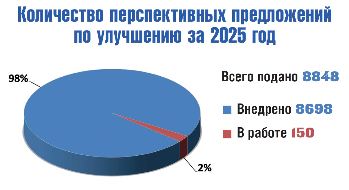 – Многие вовлечены и в проектную деятельность, и в подачу предложений по улучшениям. За этот год 779 человек подали 8848 перспективных кайдзен-предложений. Из них 8698 уже внедрены, остальные находятся в работе. Конечно, показатель не велик для многотысячного коллектива авиастроителей. Отмечу, что каждый на своем месте может найти идею для улучшения и сокращения потерь.