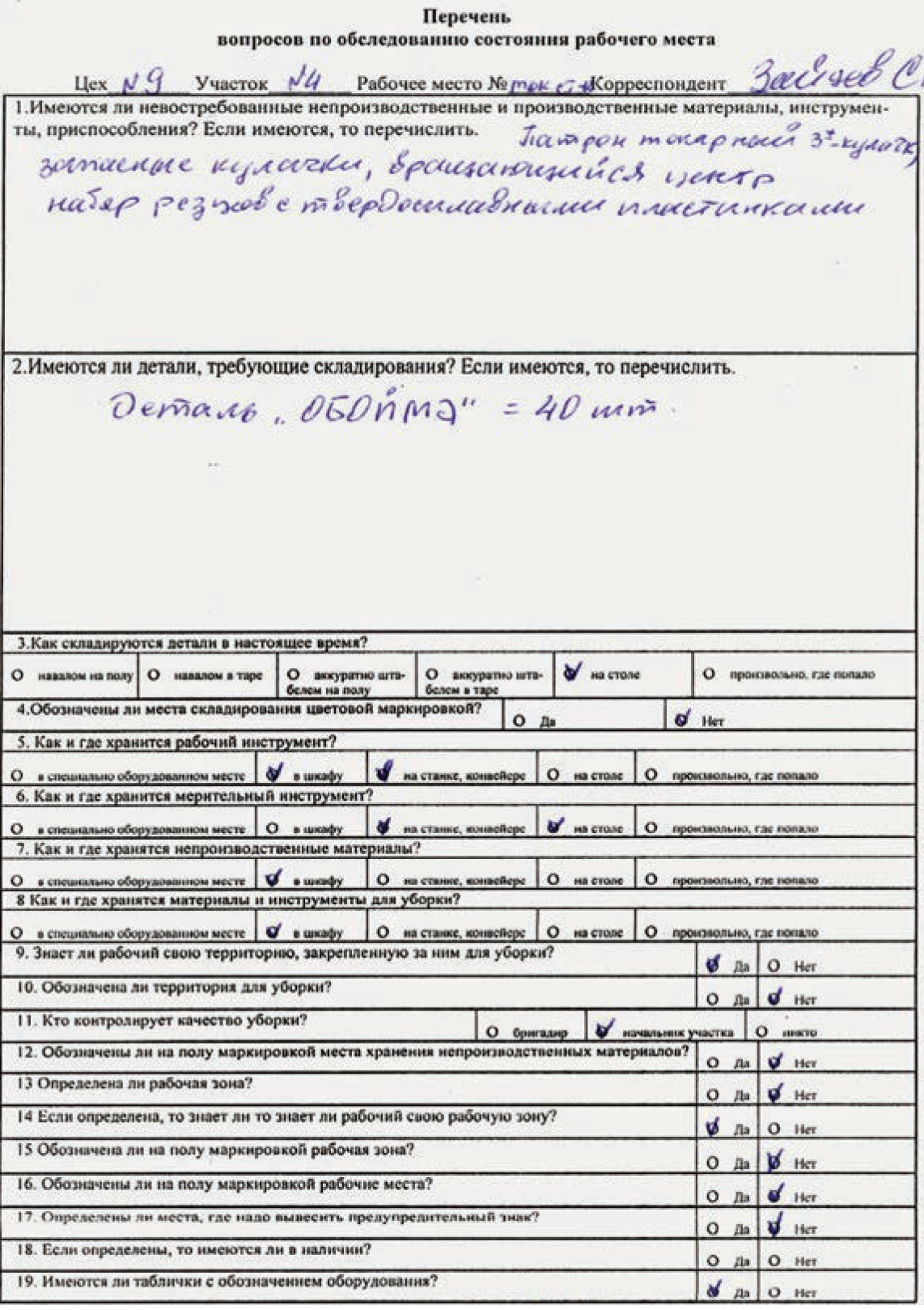 1. Проводится обследование организации рабочего места / рабочей зоны по системе 5S с заполнением соответствующего чек-листа и фотофиксацией текущего состояния (рис. 2).
