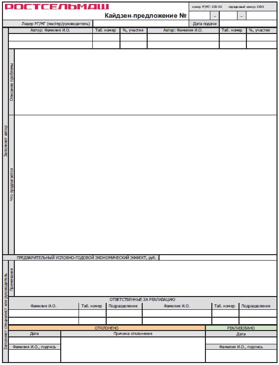 Рис. 1. Бланк подачи и обработки кайдзен-предложения