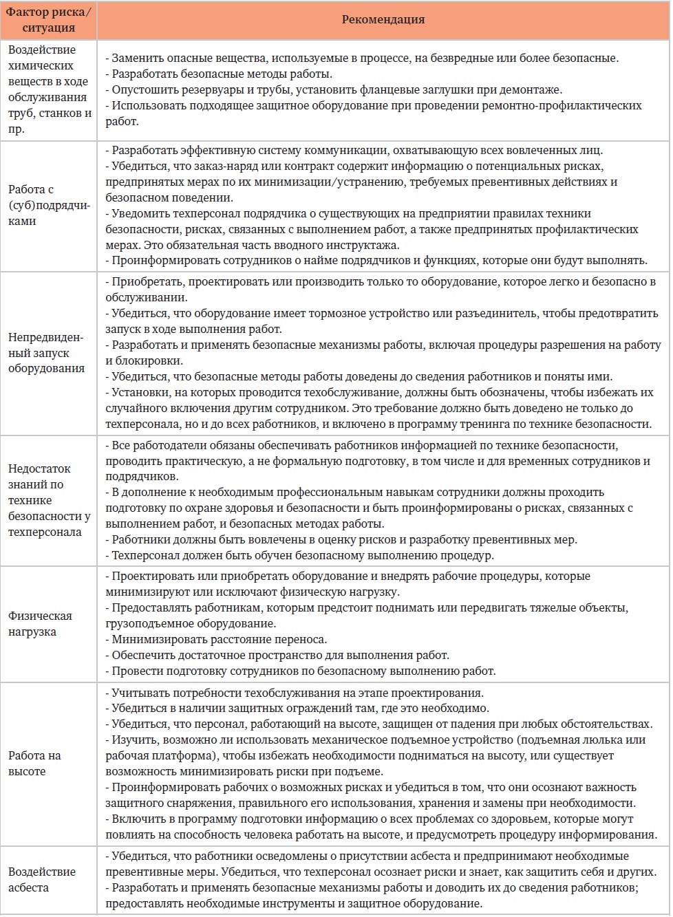 Таблица 1. Рекомендации по снижению самых распространенных факторов риска, связанных с ТОиР